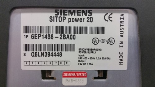 Siemens SITOP20 6EP1 436-2BA00Power supply Uin 3AC 400V-500VUout 24DC 20A