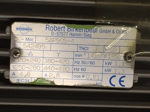 Delta: 220 - 240 V 50/60 HZ 1,1 KW 4,8A