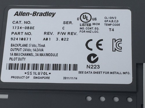 Backplane: 5 VDC, 75 Ma Output: 24 VDC, 1 A/ 24 VA Including: 1734-TOP3 Terminal Base
