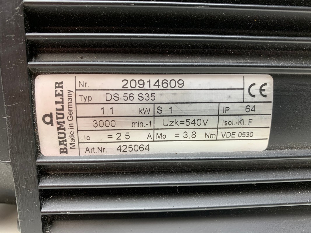 Uzk= 540 V, 3000 min.-1, 1,1 kW, Mo 3,8 Nm