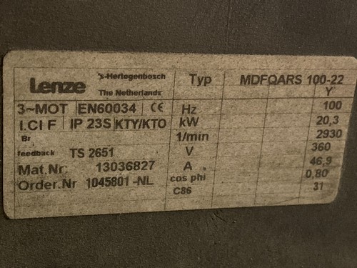 100 Hz 20,3 Kw 2930 1/min 360 V 46,9 A