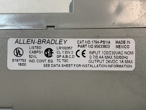Input: 120/230 VAC, 0.7/0.4 A, max. 50/60 Hz