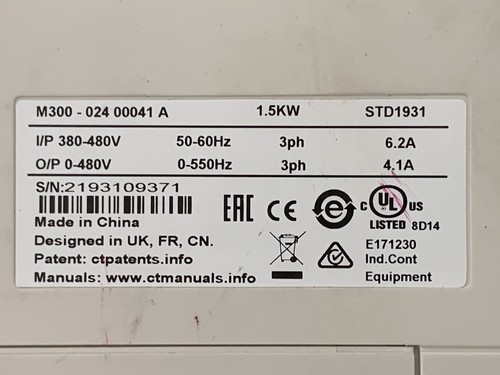 O/P 0 - 480 V 0 - 550 Hz 3ph 4,1 A 1,5 kW