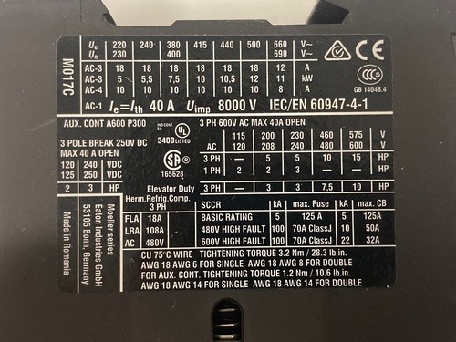 XTCE018C01TD Eaton Contactor DILM17-01 (RDC24)