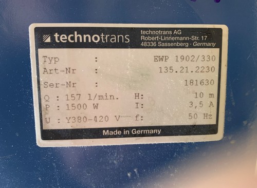 Q: 157 L/min.H: 10 M, P: 1500 W, I: 3,5 A ,Star: 380-420 V- 50 Hz