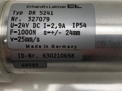 U=24 VDC I=2,9 A IP54 F=1000 N s= =/- 25 mm V= 25 mm/s