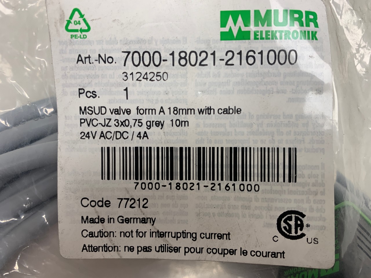 MSUD valve plug A-18mm with cable