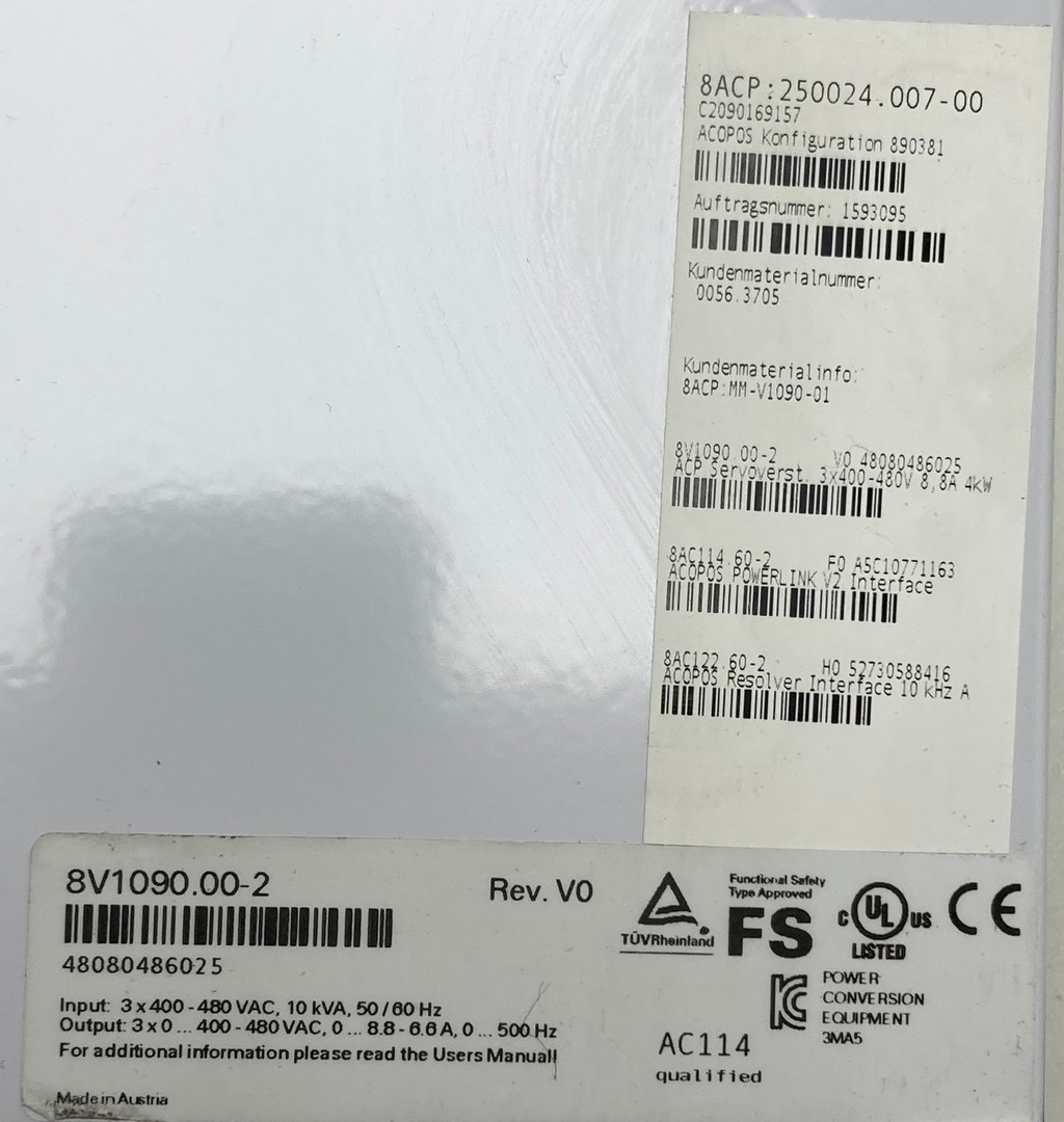 Output: 3 X 0 ... 400 - 480 VAC, 0 ... 8,8 - 6,6, A, 0 ... 500 Hz