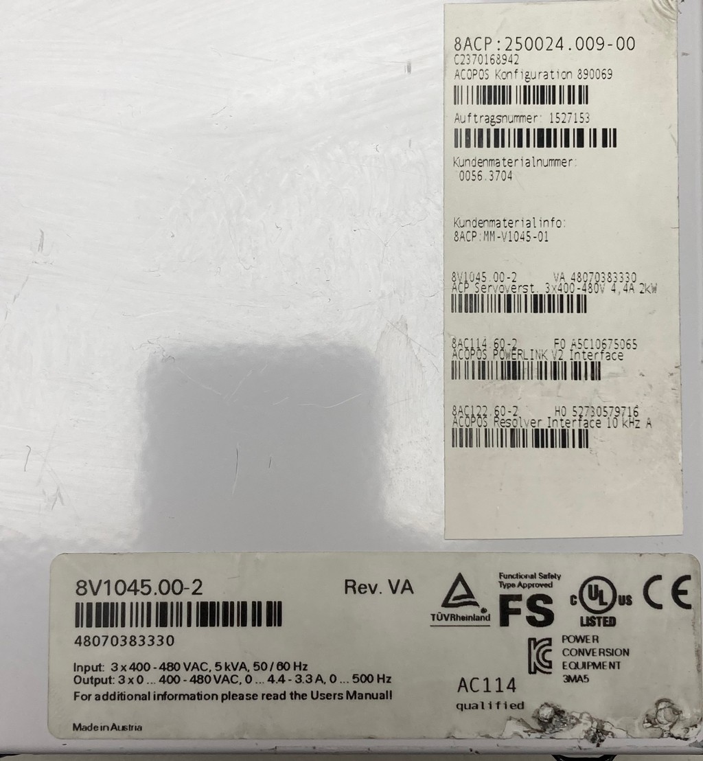Output: 3 X 0 ... 400 - 480 VAC, 0 ... 4,4 - 3,3 A, 0 ... 500 Hz