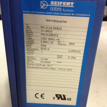Heat exchanger for KBA printing press: L0848166 ASeifert mtm systemspart number: 2116610