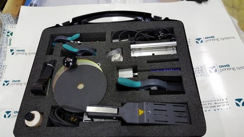 Toolkit for molten belt connections with zig-zag fingers. The melting device included in this kit can handle belts up to 100mm wide and approximately 5mm thick.