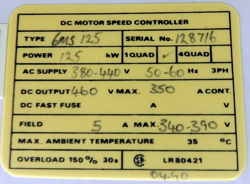 Uin = 380-440VAC Uout = 24-460VDC125kW