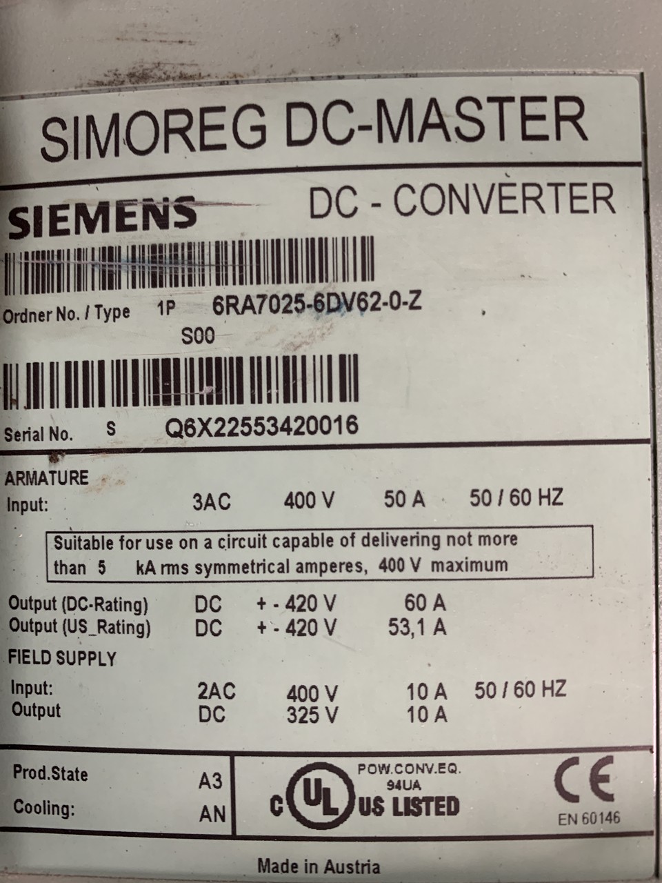 Output: DC +/- 420V 60A