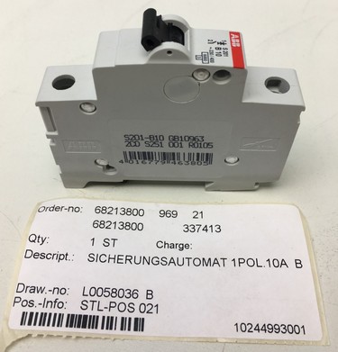 ABB S201-B10 GB109632CD S251 001 R0105Order-nr: 68213800 969 21 337413Draw.-no: L0058036 BPos.-Info: STL-POS 02110244993001