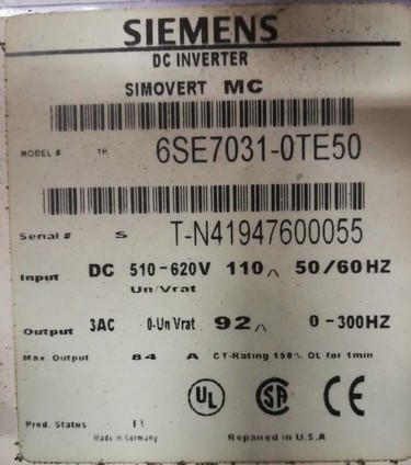 SIMOVERT MASTERDRIVES MOTION CONTROL CHASSIS UNIT INVERTER 510V - 650V DC, 92A