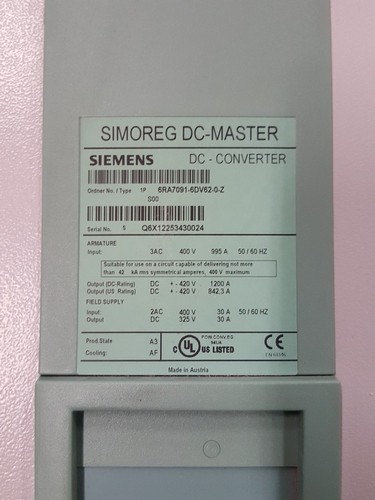 INPUT: 3-PHASE AC 400V, 995A CONTROLLABLE FIELD RECTIFIER D420/1200 MREQ-GEGF6V62