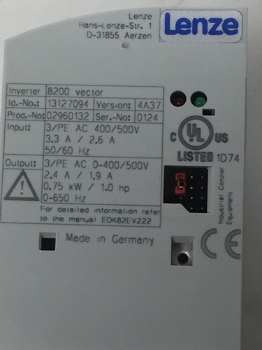 Output: 3/PE 0 - 400/500V 2,4 A/ 1,9 A 0,75kW/ 1.0 hp 0 - 650 HZ