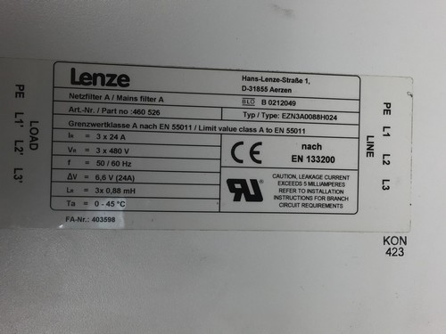Ir= 3 x 24 A, Vr= 3 x 480 V, f= 50/600 Hz