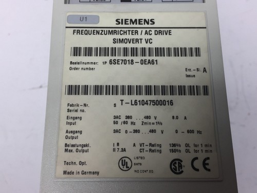 Input: 3 AC 380 … 480 V 8,0 A 50/60 Hz