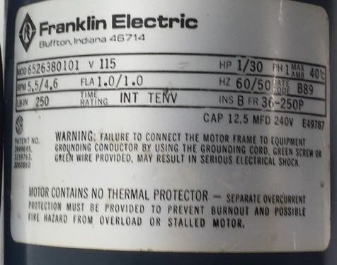 6526380101 - Franklin Electric Registration Lateral Motor