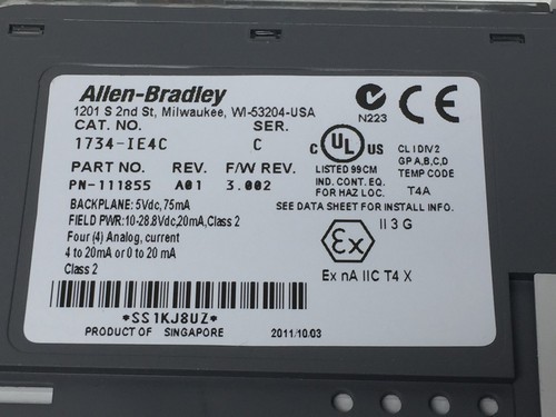 Backplane: 5 VDC, 75 mA Filed PWR: 10 - 28.8 VDC, 20 mA Including: 1734-TOP3 Terminal Base