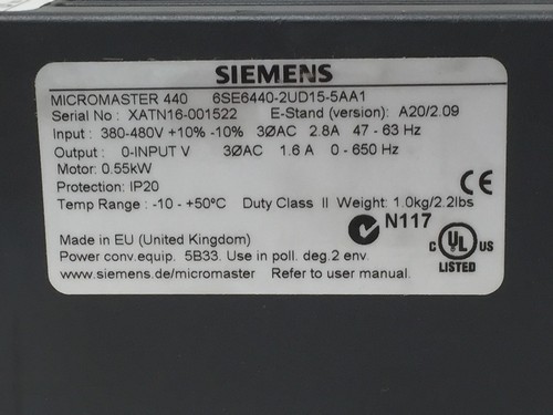 Input: 380 - 480 V, 30 AC, 2.8 A, 47 - 63 Hz