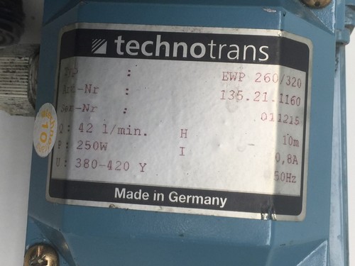 P: 250 W, U: Y380 - 420 V, f: 50 Hz, I: 0,8 A