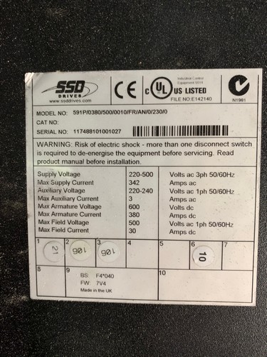 Max. Armature Voltage 600 VDC, Max. Armature Current 380 A>br/> Max. Field Voltage 500 VAV, 1 Ph 50/60 Hz, Max Field Current 30 A