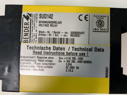 Power: 3,0 VA, Relay Contacts: aC 250 V, 5 AUnterspannungsrelais