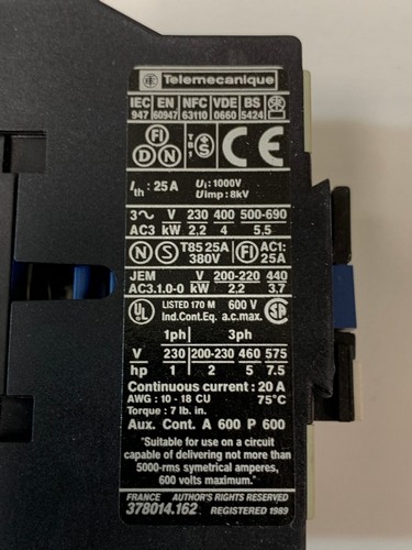 023100 - Telemecanique Contactor LC1D09 10B7