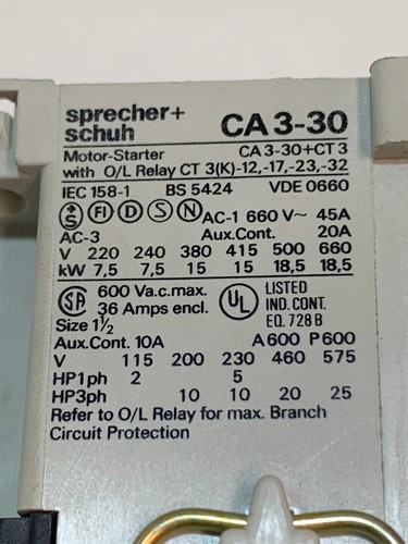 CA3-30-L01 - Sprecher + Schuh Motor Starter with O/L Relay