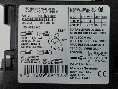 AC-3: 11 kW, 400 V, 24 VDC