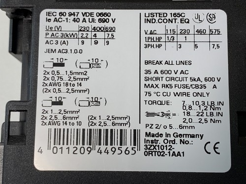 AC-3: 4 kW, 400 V, 24 VDC