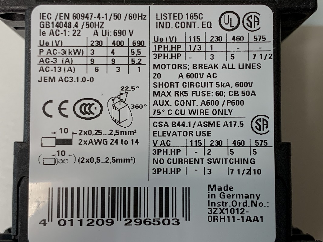 - AC-3: 4 kW, 400 V, 24 VDC