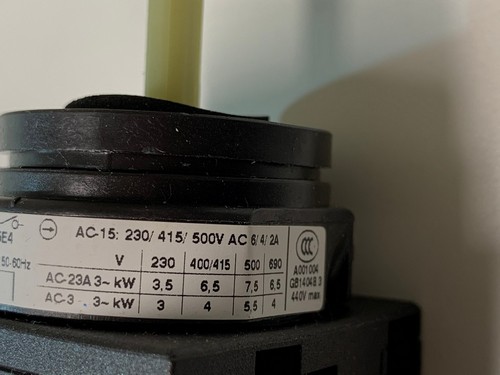 230 - 400/415 - 500 - 600 VACAC23A: 3 PH. kW: 3,5 - 6,5 -7,5 - 6,5Known in the German Parts Manuals as: Wartungsschalter