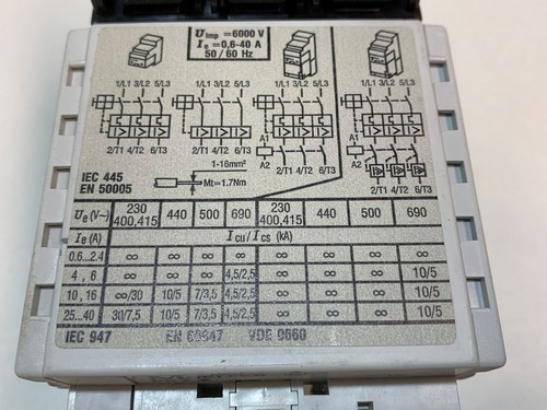 - Uimp: 6000 V, Ie: 0,6 ... 40 A, 50/60 Hz
