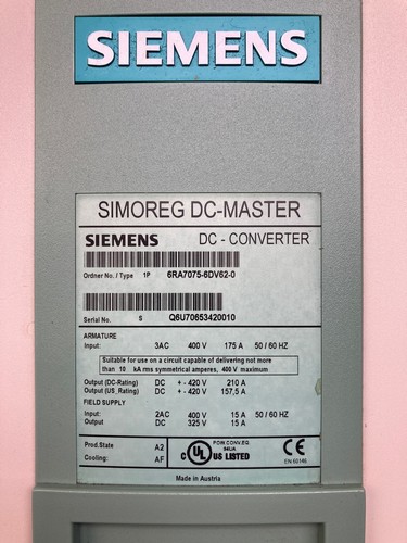 Input: 3AC 400V 175A 50/60Hz