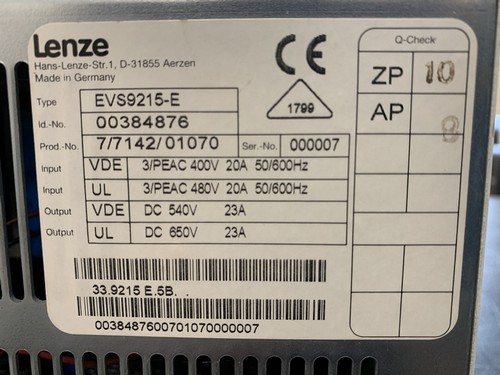 00384876 Lenze Servo Inverter EVS9215-E
