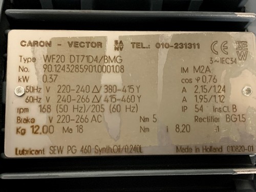- 220-240 V Delta / 380 -415 V Star, 50 Hz - 2,15/1,24 A - 0,37 kW