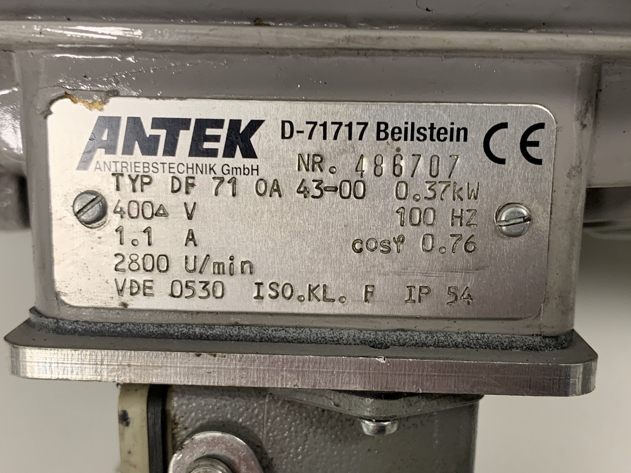 Motor: 400 V - 100 Hz - 0,37 kW - 1,1 A - 2800 U/min