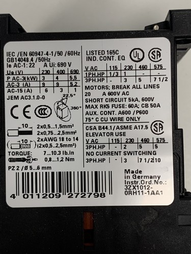 AC-3: 4 kW, 400 V, 24 VDC
