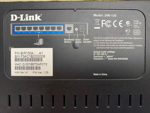 F3AC1B2000008 D-Link Ethermnet Switch DIR-130