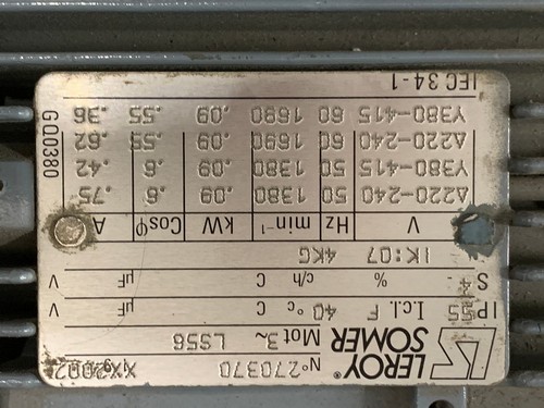 Delta 220 - 240 V, 50 Hz, 1380 min-1 0, 09 kW