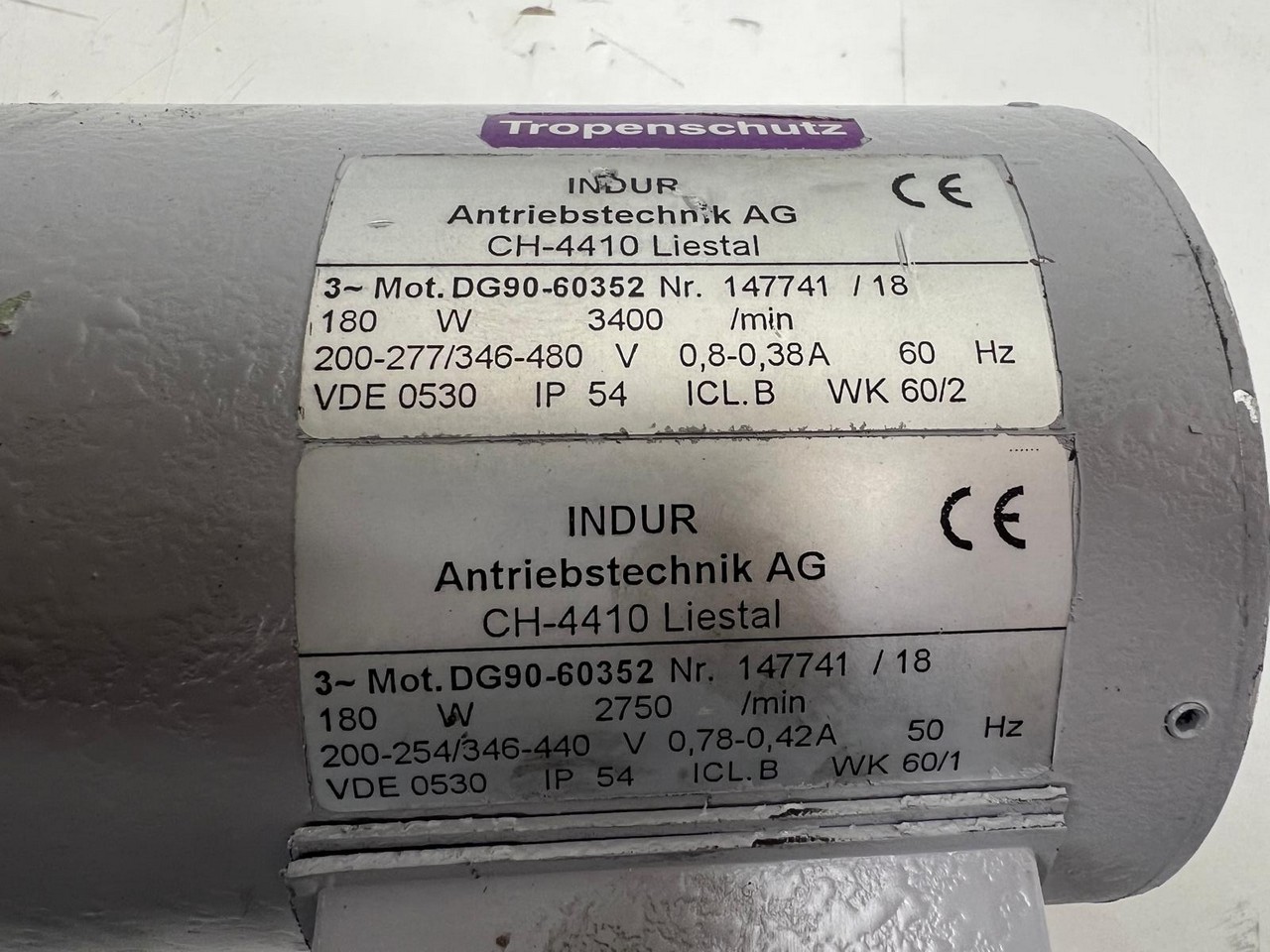 60Hz: 180W, 3400/min, 200 - 277/346 - 480V, 0,8 - 0,38A