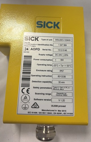 WSU26/3-103A00 Sick Photoelectric Safety Switch