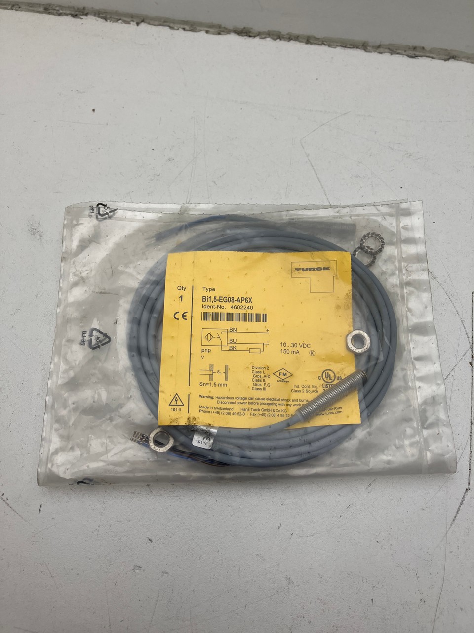 M8, 1.5 mm Detection, PNP NO, 10 → 30 V dc