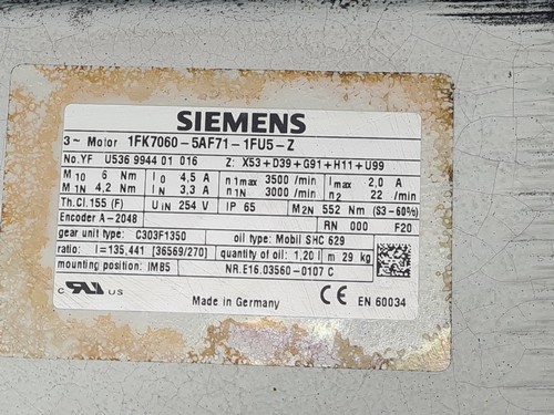 Th. Cl. 155(F), |Uin 254V, IP65, M2N=52Nm (S3-60%)